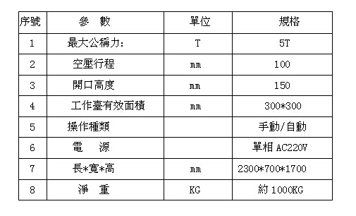 3:機(jī)械安全部分工作臺(tái)經(jīng)過真空調(diào)質(zhì)處理,表面電鍍處理長期使用不變形,不生銹。裝卸模具之設(shè)計(jì)簡單,方便,快捷。操作面可加裝紅外線安全裝置。雙手同步操作,急升保護(hù)裝置。